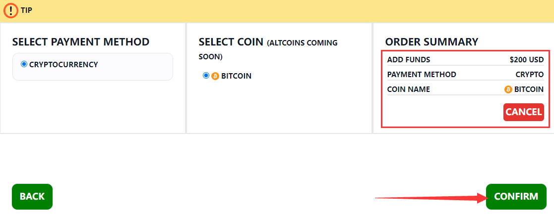 ④ Check the order summary, if everything is correct, then click "CONFIRM" button: