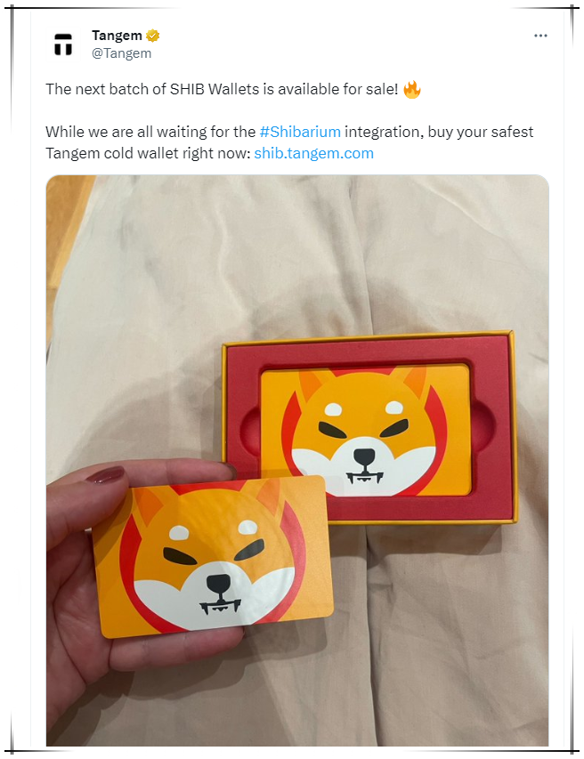 The wallet provider, Tangem, also recently announced a new collection of wallets that may include Shibarium integration. As part of its partnership with the SHIB community, Tangem gave away 10 SHIB wallets.