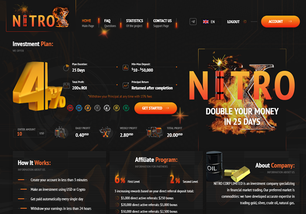 4% daily for 25 days (principal back at any time with 15% fees; principal back)